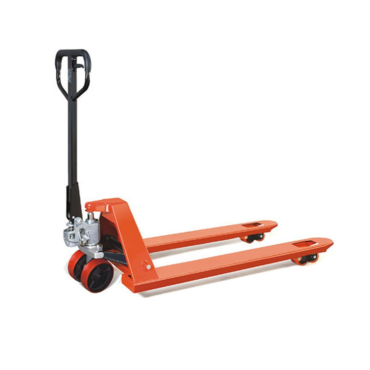 2T palltrucken är gjord av höghållfast manganstål eller rostfritt stål för kaross och gafflar, med nyckeldelar förstärkta.