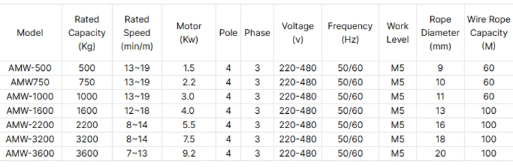 Vi har vår egen fabrik, som producerar elektrisk vajervinsch, kapaciteten inkluderar 500 kg, 750 kg, 1000 kg, 1600 kg, 2 ton, 3 ton, 5 ton och 10 ton. Strömspänningen kan vara 220V, 380V, 440V för kunderna att välja, kan också accepteras anpassad.