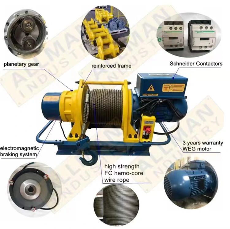 BaiYi är en processionslyft- och hissmaskinstillverkare som kan producera elektriska vajervinschar. Vår elektriska vinsch av aluminiumkropp är ett lätt men extraordinärt kraftlyftverktyg. Den integrerar motor, reduktionsväxellåda, trumma och säkerhetsbroms, som alla är inneslutna i ett robust aluminiumhölje. Denna geniala design gör att den kan ge tillräcklig lyftkraft, men är mycket lättare än traditionella stålvinschar, vilket gör att du enkelt kan flytta och installera den på en konsol eller balk, speciellt för de med begränsade fasta lyftpunkter eller frekventa byten av arbetsplats.