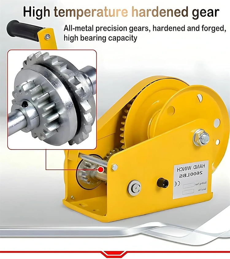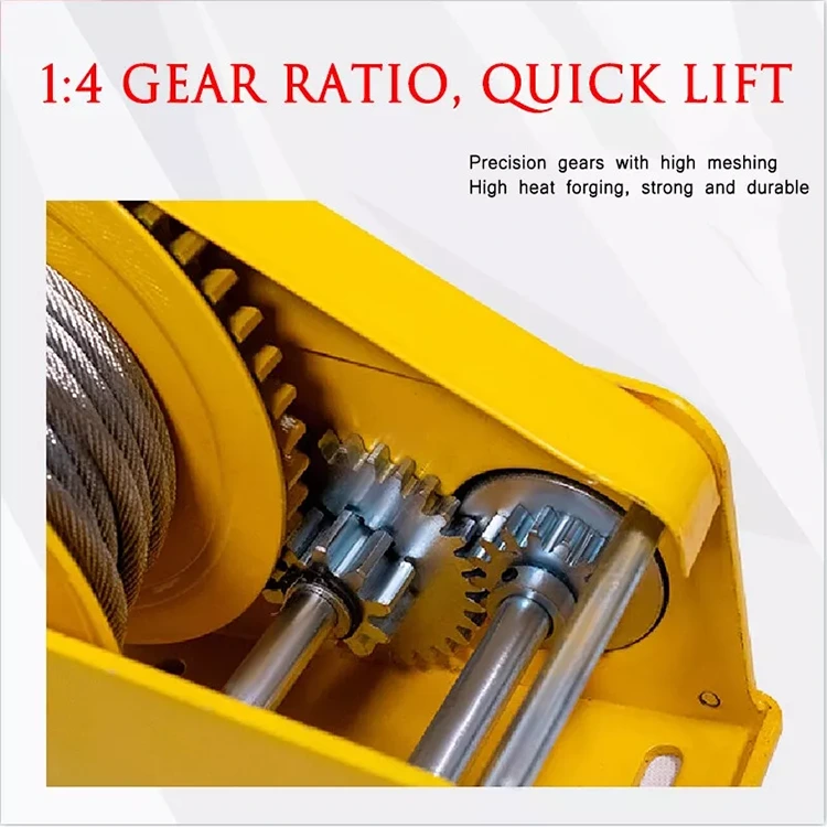 När du skakar på handtaget överförs kraften genom flera växlar, vilket omvandlar din lilla rotationskraft till ett enormt vridmoment på ståltrumman, vilket uppnår effekten av att "fyra eller två lyfter tusen pund." Enkelt uttryckt, du lägger ner en ansträngning, genom vinschen kan ge ut flera gånger eller till och med tio gånger kraften, vilket avsevärt sparar arbetskraft, förbättrar effektiviteten i hanteringen.