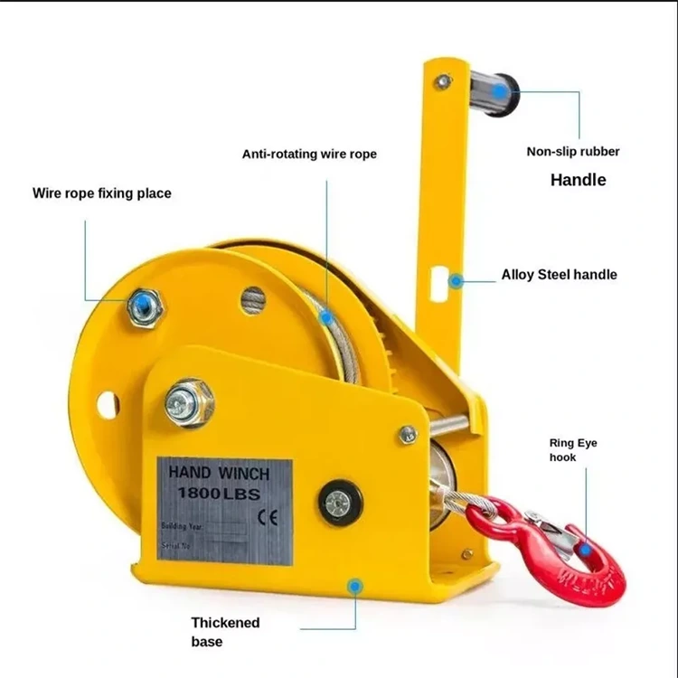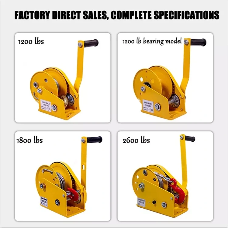 Grossistanpassad handvinsch från BaiYi Hoisting Machinery.  Våra manuella vinschar har slitstarka ståltrummor, starka bromsar och en stabil ram för att säkerställa säker och effektiv drift varje gång. Specifikationerna sträcker sig från 1200 till 2600 pund och är kompakta och lätta, vilket möjliggör enkel hantering och installation av en person. Vi stöder OEM/ODM-anpassning och ger ett års kvalitetsgaranti och teknisk support i rätt tid, så att du kan köpa sinnesfrid, sinnesfrid.