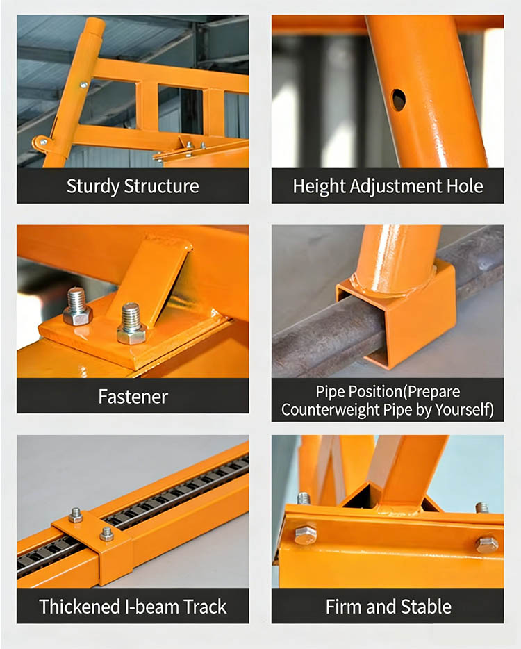 Motviktsinstallation:Lägg till motviktsrör (tillhandahålls av användaren) vid rörgenomföringspunkterna på pelarna för att säkerställa stabiliteten i utrustningens tyngdpunkt och förhindra tippning.