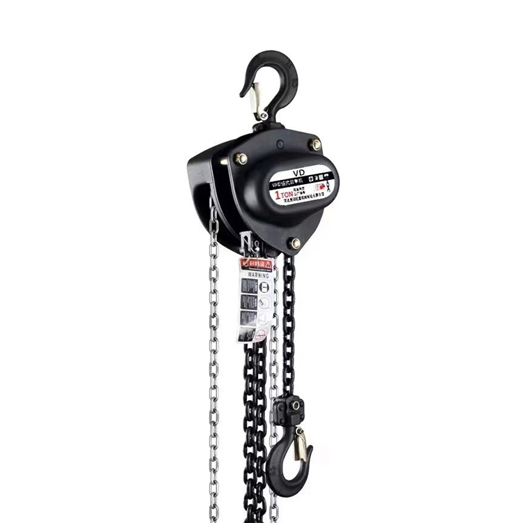 Den manuella kedjetelfern VD 1t är en manuell lyftlyft av standardtyp av kapsling tillverkad av den kinesiska leverantören Hebei Shengyu. 1T indikerar att dess märklast är 1 ton. Det är en liten lyft- och hanteringsanordning som i första hand använder manuell manövrering för att upprepade gånger dra i kedjan, som driver de interna kugghjulen och spärrbromsmekanismen, vilket gör att lyftkedjan stiger och faller, vilket gör att tunga föremål lyfts och sänks.